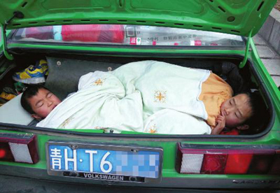 一大家子7人準備從青;卮罄罂h老家奔喪,但沒買上火車票,只好開著自己的出租車往渭南趕,而兩個9歲的小孩就塞在了出租車后備箱里,行駛至連霍高速寶天段時,被巡邏的寶雞交警發現,及時排除了隱患。