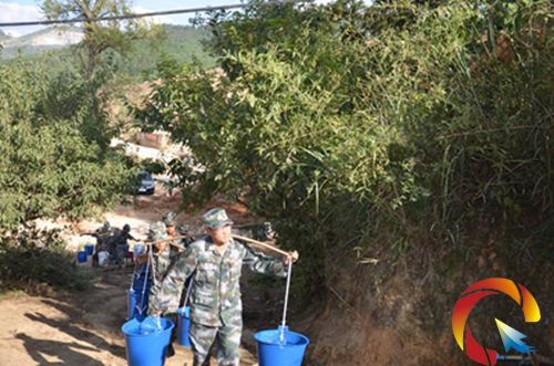 黃平縣自從6月中旬以來持續高溫少雨伏旱天氣,危及全縣飲水安全6.4萬人,2.86萬頭大牲畜。干旱造成農作物受災面積13.08萬畝,成災面積6.68萬畝,絕收面積0.92萬畝,預計糧食損失0.96萬噸,直接經濟損失6122萬元。旱情發生后,全縣武警消防官兵奔赴抗旱保民生一線,積極給飲水困難群眾送水挑水,解除群眾飲水困難。圖為黃平縣武警消防官兵為新州鎮槐花村村民送水挑水抗旱保民生。(楊 林 夏顯群 攝影報道)