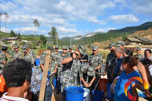 圖為武警消防官兵為村民送水抗旱保民生