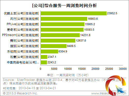 進入2013年,用戶觀看時長憑借對視頻平臺價值的綜合體現(xiàn),已經(jīng)逐漸成為廣告主和行業(yè)自我衡量的重要標準。隨著優(yōu)土合并、SMG百視通入股風(fēng)行、百度并購PPS以及近期熱傳的搜狐欲購PPTV的影響,預(yù)計未來綜合排名還將發(fā)生巨大變化。