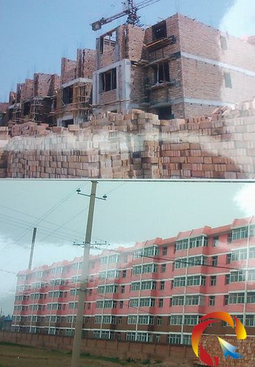 (上圖為高峰非法開發的商品房,下圖為高峰商品房售房廣告。)