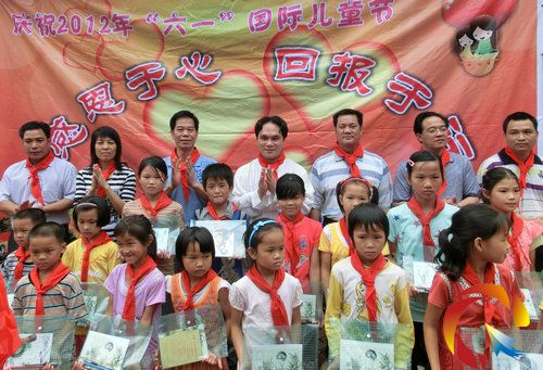 最后,陳應(yīng)偉道長與市政協(xié)、市委統(tǒng)戰(zhàn)部、宗教局、教育局、桂平市社步鎮(zhèn)黨委、政府等領(lǐng)導(dǎo)一起來到孩子們身邊,為他們送上了電腦、電風(fēng)扇、藍(lán)球、書包、學(xué)習(xí)用品以及600多冊課外閱讀書本等價值3萬多元的節(jié)日的禮物、慰問金和節(jié)日的問候,鼓勵他們克服困難,自強(qiáng)不息,快快樂樂學(xué)習(xí),健健康康成長。他希望在各級各部門領(lǐng)導(dǎo)的關(guān)懷和幫助下,孩子們的學(xué)習(xí)環(huán)境一定得到改善,祝愿孩子們能夠享受優(yōu)質(zhì)教育資源,健康快樂茁壯成長。