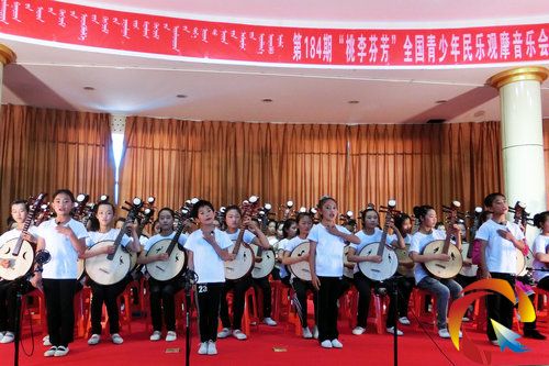 克什克騰旗萃英學校是一所地處偏僻的貧困牧區寄宿制學校,學生1500名,大多為留守兒童。2012年7月,由中國國寶書畫研究院和赤峰民族管弦樂學會共同發起的“草原公益行”走進這所學校后,該校臧瑞祥校長極為重視,主管音樂教學的楊明河主任和孫克江老師狠抓落實,在學校非常困難的情況下,與赤峰民族管弦樂學會共同努力,籌措資金購置了一百多把大中小阮, 2013年3月正式開課培訓。李琳媛會長六次下克旗親自執教,在三、四個月的時間里取得如此成績,令人震驚。這說明只要有決心、下工夫,就一定能有所突破,一定能夠成功。音樂會上學生們還表演了二胡齊奏、葫蘆絲齊奏、民樂合奏等。
