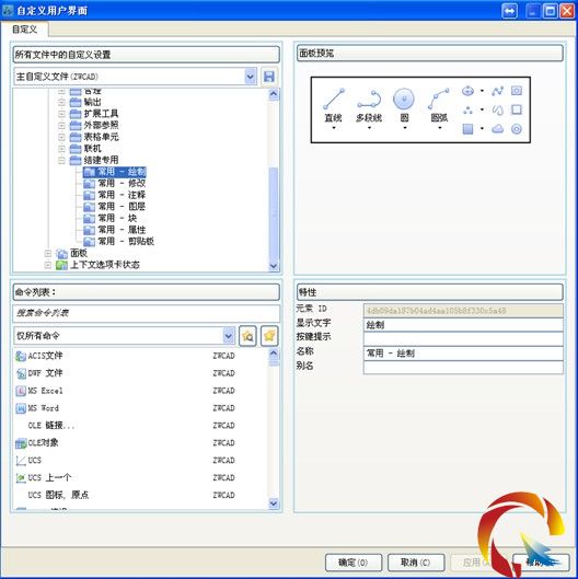 測試中,令我們驚喜的是中望CAD+2014可以自定義菜單面板(CUI),在“二位草圖與注釋”工作空間中通過用戶自定義界面,可以在功能區增刪相應選項卡及面板。這操作過程相對簡單明了,便于企業自行專業化配置和更多設計師依照習慣自由發揮。自定義的菜單更加適合專業化的軟件操作,提高設計效率。