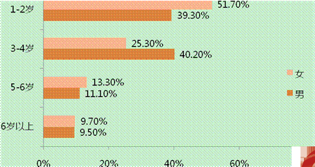 百合網調查詳細數據顯示51.7%的女性和39.3%的男性對于姐弟戀只能接受1-2歲的差距,25.3%的女性和40.2%的男性能接受3-4歲的差距,13.3%的女性和11.1%的男性能接受5-6歲的差距,而能接受姐弟戀年齡差距6歲以上的只有少數人,分別女性占9.7%,男性占9.5%。