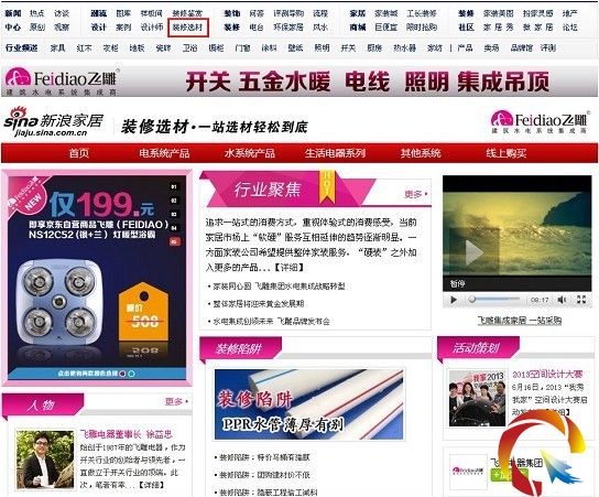 2013年7月1日,飛雕集團與新浪家居的共建頻道——裝修選材頻道正式上線http://sh.jiaju.sina.com.cn/xuancai/該頻道由飛雕集團冠名。