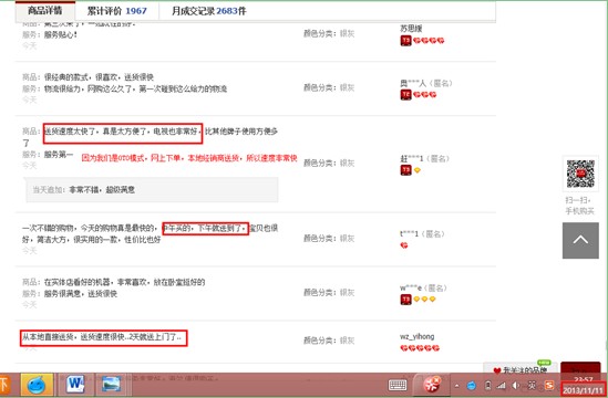 (來源于雙11當天網友評論)