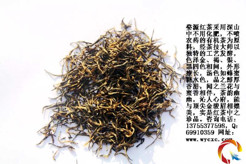 推介:婺源紅茶采用來自深山中海拔八百米以上的小葉土種茶鮮片制作,茶樹管理過程中不用化肥,不噴農藥,完全是用雜草天然有機肥作為茶葉生長的為肥料,采摘下來的茶鮮片,經茶技大師以獨特的工藝發酵,色澤金、褐、銀、黒四色相間,外形瘦長,湯色如蜂蜜糖水色,品之醇厚香甜,聞之蘭花與蜜香相伴,茶韻幽幽,沁人心府,能與頂尖金駿眉相媲美,實是紅茶中之珍品。郵購咨詢電話:13755377598,Q:1219353385 網址:www.wycxc.com