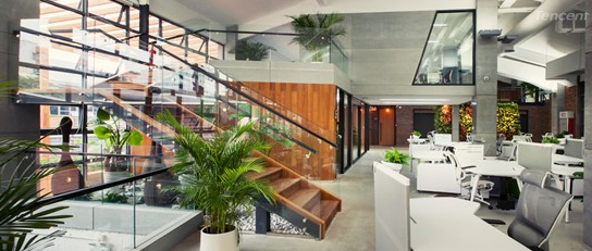 然后,對,我們希望工作人員可以忘記這里是室內,那么還需要盡可能的舒適。植物負擔起了調節室內空氣和平衡的重擔。花盆?那是上個世代的事情,向花盆澆水不僅難于打理,還會影響空氣濕度以及浪費水源。我們采用了垂直滴灌——這種系統最早源自以色列,沙漠中的猶太人可是對水無比珍惜;除了可以最大效率的利用水資源外,對空間的利用率也極其優秀。所以,在這里我們不用平均綠化面積說話,因為我們的綠化是立體的。