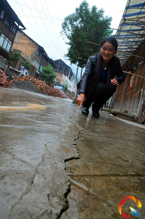 一位當地的商戶楊桃梅說,地面震動現(xiàn)象出現(xiàn)后,她以為是運輸磚塊的大貨車在往地面上倒磚塊。“當時我還責怪說,這些駕駛員倒磚,怎么會發(fā)出那么大的聲音,還讓人休息不。”楊桃梅說,后來,地面震動和發(fā)聲現(xiàn)象持續(xù)出現(xiàn),她這才意識到出大問題了,絕不是倒磚那么簡單。“這種現(xiàn)象以前也出現(xiàn)過,我家門口都還有以前地面震動后留下的裂縫,現(xiàn)在被我用水泥縫合了”楊桃梅指著她家門口那一條之前地面震動后出現(xiàn)的裂縫告訴記者說。