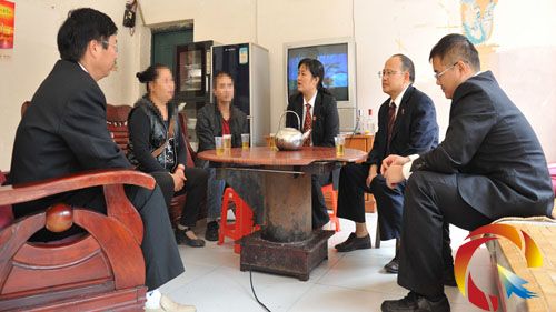 2013年10月12日,劍河縣人民法院的法官們來到湯某家中回訪,幫助她及家屬消疑慮解心結,鼓勵其走出陰霾,堅強生活。看到法官們的到來,湯某熱情地招呼法官們入座并忙著端茶倒水。原來,在2012年11月20日,湯某被詐騙團伙以兌換外幣為名騙取16萬元人民幣。2013年9月23日,劍河縣人民法院召開公開退賠退贓大會,當法官電話通知湯某前來領取被騙錢財時,湯某因被騙受到的打擊太大,把法官當成了騙子并報警,后經民警確認后,湯某才激動地到法院領取了被騙錢款。