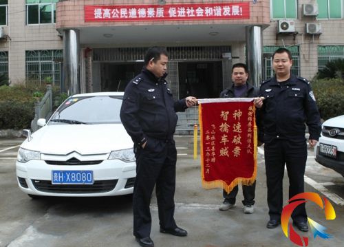 12月18日,錦屏男子姜某帶著錦旗到縣公安局致謝。他說,警方破案神速,僅48小時就追回了他被騙走的車輛。