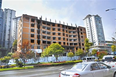 凱里市城區一幢未完工的爛尾樓“沉睡”近十年至今未拆除。該爛尾樓位于貴州省凱里市凱開大道體育館附近,建筑立面紅磚裸露,樓層頂部還未完工,鋼筋裸露在外面,這個“半吊子工程”建筑在此“沉睡”了近十年時間,造成了城市資源的極大浪費。