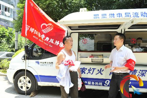 當(dāng)天上午,在豐球綠都小區(qū)內(nèi)一臺(tái)印有“凱里供電局流動(dòng)營(yíng)業(yè)廳”的車輛和一面印有“苗鄉(xiāng)侗寨電力服務(wù)隊(duì)”的旗子格外顯眼,不時(shí),現(xiàn)場(chǎng)集結(jié)了許多群眾,有的前來繳電費(fèi)、有的來咨詢電價(jià)政策、有的了解用電安全知識(shí)等等,現(xiàn)場(chǎng)的服務(wù)隊(duì)伍員們忙而不亂,有序開展電力服務(wù)隊(duì)進(jìn)社區(qū)活動(dòng)。