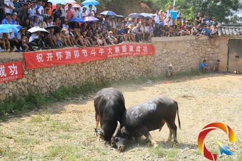 7月16日午,開懷村游卯節斗牛大賽隆重拉開戰幕,來自凱里及周邊的牛迷們拉著斗牛聚集開懷村,數千群眾也隨之趕到賽場。整個山村行人攘攘,歌聲飛揚,熱鬧非常,節日氛圍濃厚。