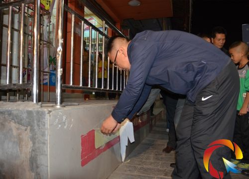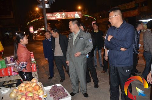 執法部到老二商場督查超門面經營情況。(粟瓊 攝)
