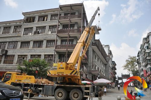 9月11日,工人們正在黎平古城翹街緊張有序地安裝景觀燈。為改善縣城人居環境,做靚城市夜景,進一步提升縣城整體形象和品位,黎平縣在縣城平街,開泰路,富民路,黎陽大道,五開南、北路等主要路段沿街建筑及地標建筑實施景觀亮化工程。項目計劃實施亮化房屋108棟,總投資約590萬元。