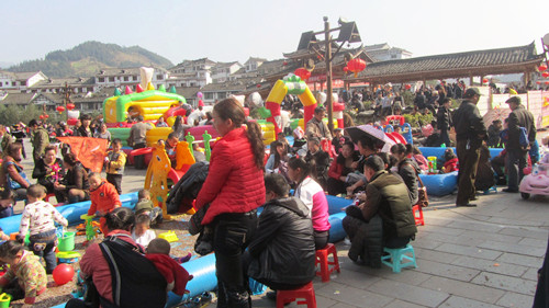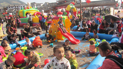 正月初六——元宵節(jié),雷山舉辦猜燈謎活動、斗牛斗狗斗豬比賽、民間龍燈盛會、蘆笙舞、苗族情歌飛歌對唱等民俗活動。深受廣大群眾喜愛,群眾參與性高,吸引許多外來游客,帶動等其他產(chǎn)業(yè)發(fā)展,兒童娛樂場成了熱門,吸引上1000名孩子光顧。(圖為:雷山縣木鼓廣場兒童娛樂場熱鬧場景)