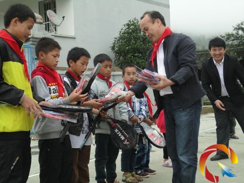 雷中校長白志恩給掌批小學留守小學生捐送羽毛球拍歡度暑假