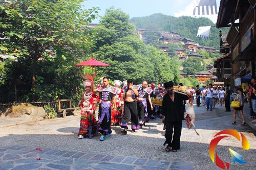 如您對苗家婚禮有興趣,可以在11日至12日到西江千戶苗寨去,看那來自中外的百對新人,身著苗族結婚盛裝,在鼓藏頭、寨老的主持下,在苗家小伙、苗家姑娘及苗家婦女的陪伴下,有的抬豬,有的挑鴨,有的擔糯米飯,整個隊伍在苗寨的古街向你浩浩蕩蕩地走來。那神秘熱鬧大氣的苗家婚禮您可盡收眼底。