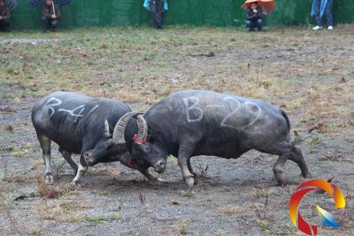 11月11日,苗嶺斗牛屆最高40萬(wàn)元斗牛獎(jiǎng)雷山苗年斗牛中年牛開(kāi)戰(zhàn)。當(dāng)日,雷山下著蒙蒙細(xì)雨,但雷山千年的斗牛史,依然吸引全國(guó)各地的斗牛愛(ài)好者蜂擁走進(jìn)斗牛場(chǎng)。
