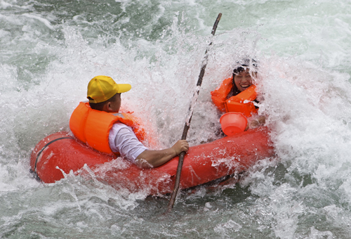 杉木河漂流線路全程23公里,總落差達700米,被譽為“有驚無險”的女士河。杉木河漂流完全要靠自己撐船和掌舵。河道或深、或淺,但巨石、暗礁滿布,也正是它們,才有激流探險可言。