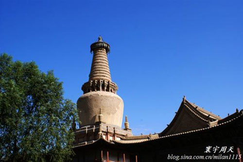寺的最后面是高聳的磚木喇嘛白塔,俗稱土塔,為明代建造,建于邊長23米的方形臺基上,通高33.37米。