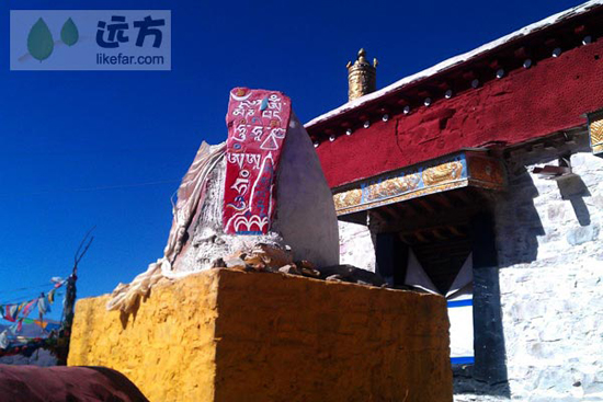 澤當鎮,位于雅礱河與雅魯藏布江匯流處東側,是山南地區專員行政公署所在地,也是乃東縣政府所在地,海拔3560米,是藏南交通樞紐。雍布拉康位于澤當東南10公里的扎西次日山上。“雍布”意為“母鹿”,因扎西次山形似母鹿而得名,“拉康”意為“神殿”。雍布拉康是西藏歷史上第一座宮殿。據史書記載始建于公元前二世紀。松贊干布暑期由宮殿改作寺廟。文成公主初來西藏時每到夏季都會和松贊干布來這里居住。至五世達賴時又在原碉樓式建筑基礎上修了四角攢尖式金頂,并將其改為黃教寺院。雍布拉康主要供奉釋迦牟尼佛像。宮殿內的壁畫上生動地描繪了西藏的第一位國王,第一座建筑,第一塊耕地的歷史故事。 雍布拉康分為兩部分,前部是一幢多層建筑,后部是一座方形高層碉堡望樓,與前部相連。公元5世紀,藏王托托念贊時期,傳說一本佛經從天而降,正好跌在雍布拉康宮頂,當時無人能識。有圣人斷言,到了公元7-8世紀就有人能解讀此書。所以這本書被很好地保留在雍布拉康。