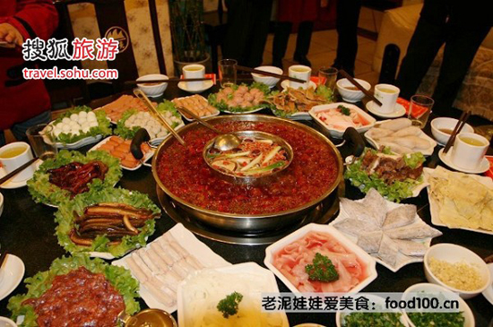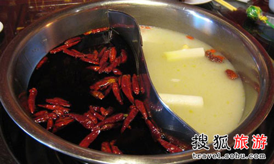 重慶被譽為“火鍋之都”。麻辣火鍋發源于重慶對岸的江北。當時挑擔子工人買來水牛的內臟,洗凈干凈后,將肝、肚切成小塊,擔頭設有爐具,上設一只大洋鐵盆,成為多格,盛載一種麻、辣、咸的鹵汁,專向碼頭工人兜售。客人光顧時,各人認定一格,且燙且吃。民國23年重慶城內出現較具規模的麻辣飯店,只是將分格鐵盆換成了赤銅小鍋,由客人自行調制鹵汁、蘸汁。重慶火鍋以麻辣為主,多味并存,講究調味,注重用湯。