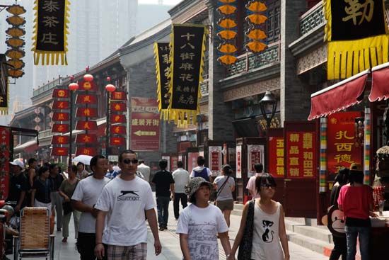 再說鼓樓吧。鼓樓,原先是天津的中心。但前些年把老城拆了個精光,所以也再不提它的中心地位啦!如今,這里的建筑多是仿清代民間建筑。街內有近百家店鋪,主要經營文化用品、古舊書籍、民俗用品、傳統手工藝品等。