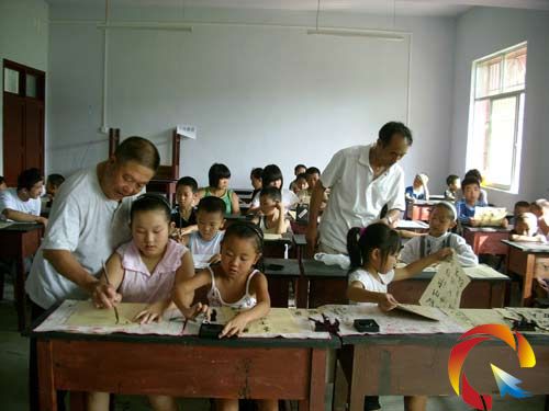 周家珩等老同志義務(wù)為小學(xué)生上書法課