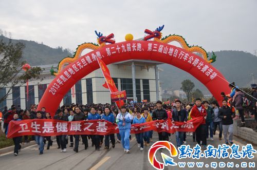 2013年元月1日上午,凱里地區近萬名干部群眾參加凱里市組織的2013年凱里地區元旦健身長跑、山地自行車公路比賽活動,喜迎2013年元旦佳節。【凱里地區近萬名干部群眾參加2013年元旦健身長跑、山地自行車公路比賽活動喜迎元旦佳節】