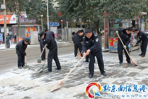 新年伊始,萬象更新!當人們還沉浸在歡快的元旦假期之際,1月4日,2013的第一場雪悄然來臨,尤如仙女扇花飄落大地,傾刻間,秀美的山川披上了一件銀色的外衣,使昔日青山綠水的山城凱里白愷愷一片,銀裝素裹,持續低溫導致地面結冰,成為一道道亮麗的美景線,風雪中,行人在冰景中蹣跚行進,汽車在薄冰中緩行。危難之時,凱里公安全警投入、全員參與投入到抗冰保暢一線。【風雪中,我為你護航——凱里公安首戰2013的第一場雪】