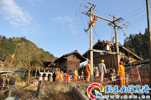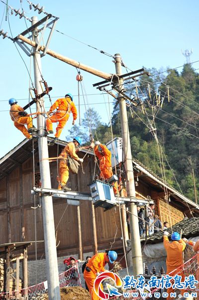為保障群眾高峰時段的正常用電,防止節假日及冬季、春節用電高峰期間配電變壓器過載發生燒壞的情況,凱里供電局出資約1000萬元為黔東南農村地區安裝了480臺變壓器,提前做好了冬季高峰期用電的應對準備。圖為12月31日在雷山縣大塘鄉也耶村更換變壓器。(姚瑤 羅茜)