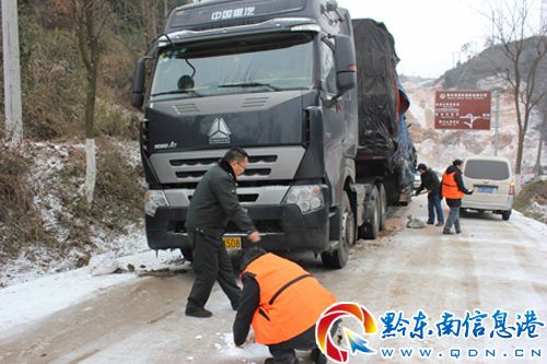 1月4日,凱里市迎來2013年首次低溫降雪和凍雨天氣,境內國道320線及省道306線、308線大部分路段路面出現凝凍,路面結冰濕滑,影響車輛行駛安全。