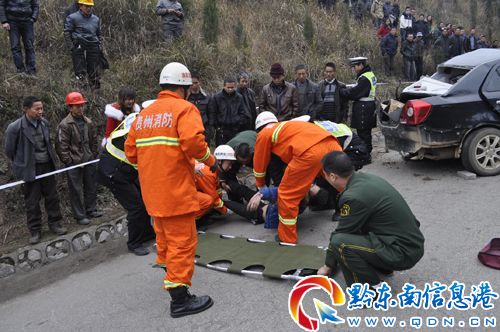 13時(shí)50分許,施秉縣消防大隊(duì)接到事故報(bào)警后,迅速出動(dòng)10名救援官兵趕往事故現(xiàn)場(chǎng)。
