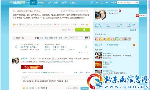 當(dāng)我們問(wèn)起他在微博宣傳這塊有什么想法時(shí),他這樣給我們介紹:“我現(xiàn)在有一個(gè)想法,就是希望大家都開通個(gè)人微博或博客或空間來(lái)宣傳自己的家鄉(xiāng),實(shí)現(xiàn)人人都是外宣的一個(gè)平臺(tái)或窗口,讓外面的人通過(guò)我們了解雷山的文化旅游和山水風(fēng)光,同時(shí)也通過(guò)大家把雷山宣傳出去。”