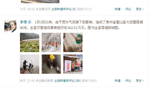 在我們閱讀他的微博時(shí),他發(fā)的一條“醉美雷公山雪景”微博,幾分鐘內(nèi),網(wǎng)友閱讀就達(dá)3937次,轉(zhuǎn)發(fā)和評(píng)論26次。(金碧祥 趙彬敬)