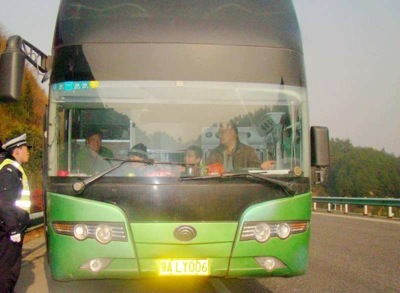 下午3時20分許,執(zhí)行追擊和攔截任務的民警追出30多公里后在滬昆高速上行線對門坡2號隧道(滬昆高速1647km+800m)入口處發(fā)現(xiàn)一輛車牌號為鄂ALY006的綠色長途客車。經過比對,交警確認這輛車就是乘客報警反映的甩客的大客車。于是,民警立即使用喊話器指揮其到臺江加油站停靠接受檢查。