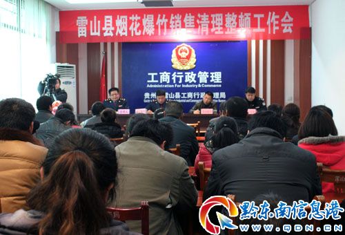 春節,煙花爆竹銷售旺季即將到來,為進一步加強煙花爆竹安全監管,推動雷山縣煙花爆竹經營市場規范、有序地發展。1月14日, 縣工商局組織召開了全縣煙花爆竹銷售清理整頓工作在該局會議室, 縣公安局副局長龍再敏、縣安監局副局長金偉,煙花爆竹生產批發經營的個體、企業69人參加會議。現場簽訂了《煙花爆竹文明經營承諾書》,承諾落實主體責任,加強安全管理。