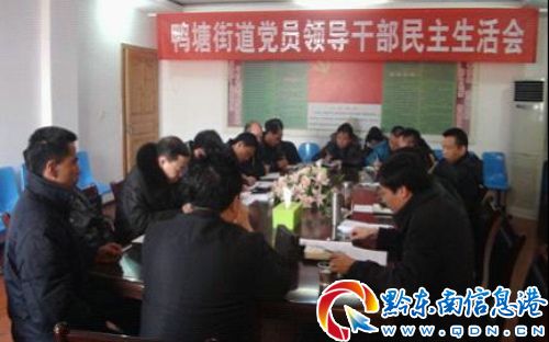 近日,鴨塘街道召開了2012年黨員領導干部民主生活會,會議由街道黨委書記曾理主持。街道部分中層干部、村兩委主要負責人、部分兩代表一委員和“幫 聯 駐”人員列席了此次會議,凱里經濟開發區常務副主任張雙紅到會指導。