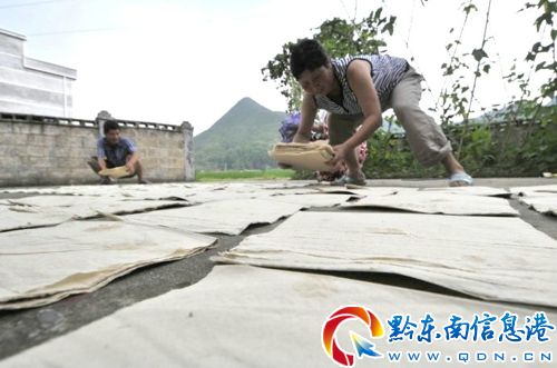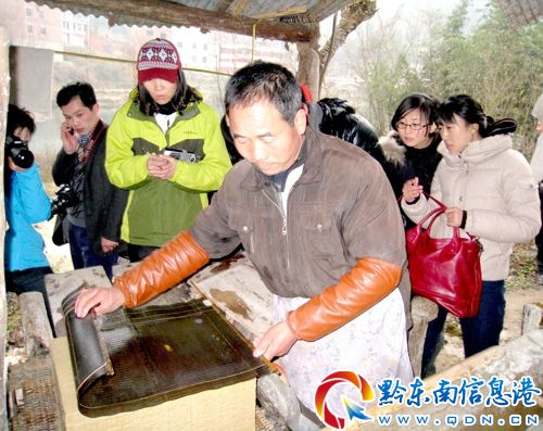 經(jīng)查考,古法造紙工藝在當?shù)刂饕屈S姓侗族一脈所傳,是在東漢蔡倫發(fā)明的造紙術的基礎上發(fā)展演變而來的。400多年前黃姓侗族先人由湖南靖縣遷入岑鞏縣境內龍統(tǒng)村毛坪和白水村的爛褥河等地,至今這一古老的造紙工藝已在當?shù)貍髁?1世人。