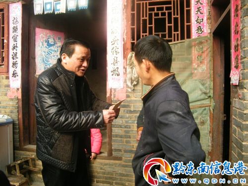 在與碧波鄉(xiāng)干部職工見面座談會(huì)上,曾佑福副市長(zhǎng)代表凱里市委、市人民政府送上了慰問(wèn)金5000元,并表達(dá)了對(duì)碧波鄉(xiāng)人民的親切問(wèn)候和新春祝福。在孤寡老人和兒童潘鳳平家中,慰問(wèn)組一行詳細(xì)詢問(wèn)了老人和孩子的生活情況、詢問(wèn)孩子是否享受到了低保、孤兒基本生活費(fèi)用等政策扶持制度,鼓勵(lì)他們要在黨委、政府的關(guān)心幫助下,自力更生,奮發(fā)圖強(qiáng),戰(zhàn)勝困難,并送去了慰問(wèn)金400元。在離任村支書楊正學(xué)家里,慰問(wèn)組一行與老支書聊起了民生家常,并送上慰問(wèn)金400元,老支書開心的談到了凱里市60歲老齡補(bǔ)貼的惠民政策非常好,感謝黨和政府對(duì)老人的關(guān)心。在計(jì)生先進(jìn)戶姚茂芳家中,慰問(wèn)組一行向姚茂芳家人送去了誠(chéng)摯的祝福,感謝他們?yōu)槿丝诤陀?jì)劃生育工作做出的積極貢獻(xiàn),鼓勵(lì)他們搞好生產(chǎn)生活,撫養(yǎng)好孩子,為計(jì)劃生育模范家庭做榜樣,并送上了500元慰問(wèn)金。
