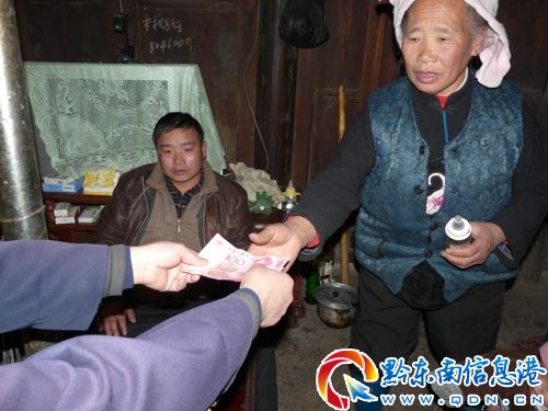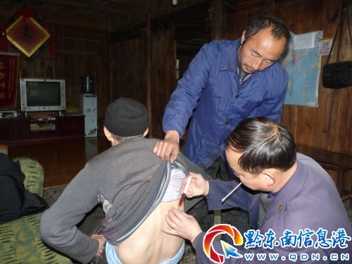 怎么不擔心呢?她說,2008年那年下大雪,晚上十點半鐘了,小高山那邊還有人打電話來,說是文中森老者發高燒老火,咳嗽很厲害,60多歲的人了,天又那么冷。文正江接到電話,估計了一下天氣和路程,就說在晚上12點以前可以趕到。說完,準備好了輸液用藥,背起藥箱就踏著雪凌出發了,當時天又黑,路又滑,快走到小高山的時候,腳下一滑,摔了一跤,輸液瓶也摔碎了,他又返回家來,重新配好藥,再次出發,到文中森老者家的時候,已是半夜三點鐘了。等他為文老者輸好液,天都亮了。在我們寨子里,半夜三更打電話來請他看病的事情經常有,我老公從來也不會拒絕,說好了什么時間到就什么時間到,懸殊不過十來分鐘,他(指文正江)還說,做人就是要講一個誠信。