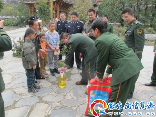 在新春佳節來臨之際,為了讓困難群眾過上一個歡樂、祥和、平安的新春佳節,2013年1月30日,黔東南州公安局黨委委員、副局長、消防支隊隊長傅勤勇一行在縣委常委、縣政法委書記、副縣長巫貴生和西江派出所教導員楊啟明的陪同下深入到西江村開展春節送溫暖活動,深受困難群眾好評。
