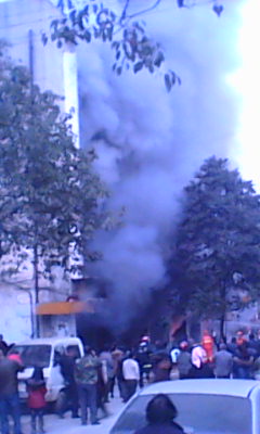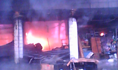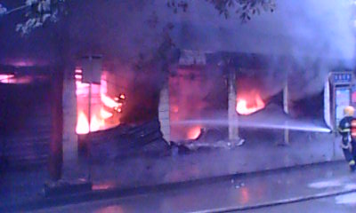 快訊:今早6時左右,臺江百貨大樓突發大火,幾十個店面全部被燒毀。消防官兵趕往現場撲救,目前,事故原因正在進一步調查當中。 相關新聞: 臺江縣商業大樓發生一起火災(組圖)
