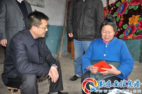 在特困戶潘炳儒家,周文峰仔細詢問生產生活情況后,鼓勵他們過好春節,抓好生產,爭取早日走出困境,并給老人送去了500元慰問金。