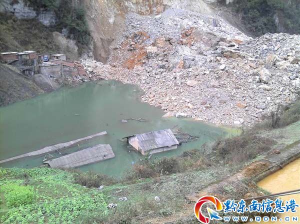截至2月19日13時,貴州凱里龍場鎮山體崩塌仍在持續,被困5人仍下落不明,大量石塊阻斷山下河流形成堰塞湖,國土資源部相關專家已趕到現場指導搶險,專家組初步分析認為,此次崩塌石方已超過20萬立方米,崩塌最高點距離地面250米,屬大型山體垮塌災害。