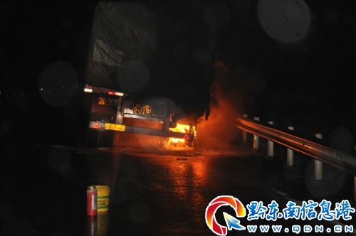 2月21日5時05分,臺江縣消防大隊接到報警稱,一輛滿載煤炭的大貨車在滬昆高速臺江至凱里方向石板橋路段起火,情況萬分緊急,請求消防官兵前往救援。臺江縣消防中隊迅速出動兩輛水罐消防車,一輛搶險救援車,一輛指揮車,官兵13人趕往現場處置。