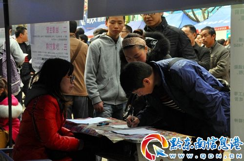 黔東南信達(dá)會(huì)計(jì)代理公司推出的招聘崗位有業(yè)務(wù)員和文秘人員等,業(yè)務(wù)員崗位前來問詢和報(bào)名的不少,但文秘崗位截至當(dāng)日上午11點(diǎn)僅有二人報(bào)名。“來咨詢的人也多,但工作人員介紹應(yīng)聘條件后,都望而卻步了。”該公司毛媛紅總經(jīng)理說,該崗位除要求應(yīng)聘者有較強(qiáng)寫作能力外,還要求其懂策劃、懂駕駛技術(shù),具有一定的攻關(guān)才能。
